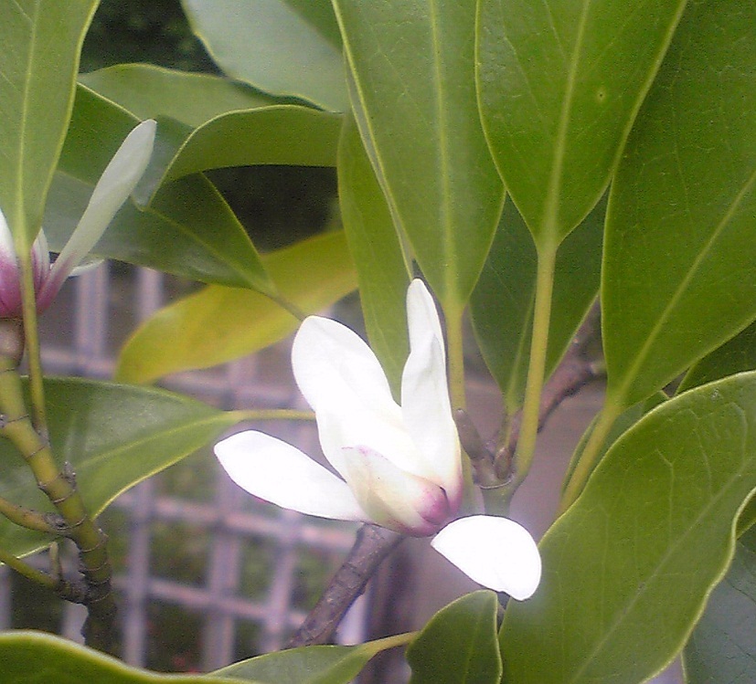 春に完熟バナナのような芳香を放つ花木です。花色はクリーム色。栽培品は中国原産のカラタネオガタマで、種としては別のものです。この木は白鳥庭園にひっそりと咲いていました。小さくて気がつきません。幹は太く、4mの大木になります。