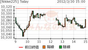 2012/03/31 - minnsann123さんの株式ブログ。タイトル:「3/30 NKは、続落だが下髭の長いほぼ十字線。」 本文:円高振れの中、週末・年度末の相場展開だった・・・か。 NK 画像1