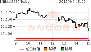 2012/04/03 - minnsann123さんの株式ブログ。タイトル:「4/2 迫る25日移動線、上げ止まったNK」 本文:小幅下げも覚悟していたのに、小幅上げとなった。ただし、日足は陰線。 NK 画像1