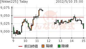 一時9000円割れするも、円高反発で後場には9000円台維持に。