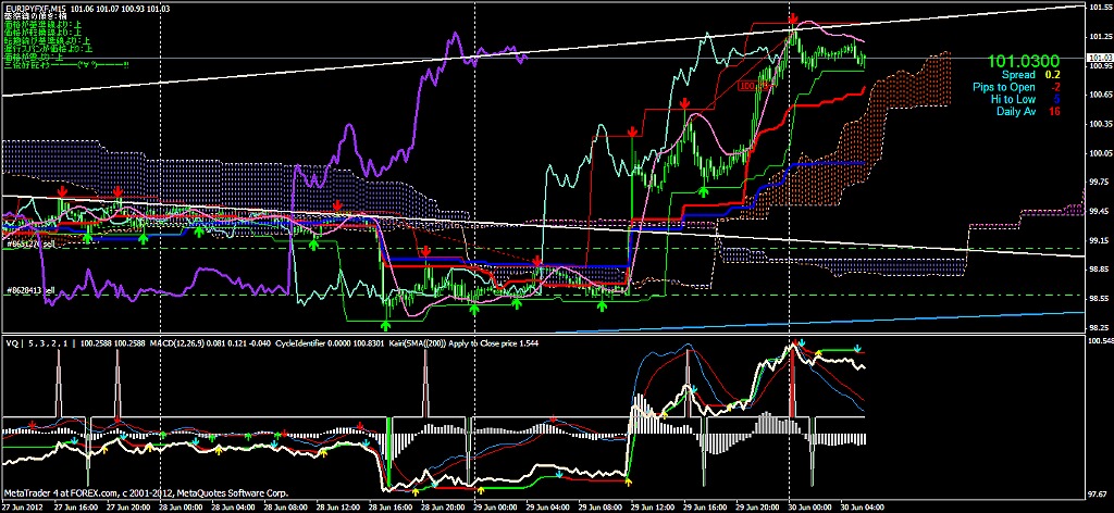 2012/07/02 - けろけろさんの株式ブログ。タイトル:「2012-06-30 週末の結果」 本文:左からユーロ・ドル ユーロ・円