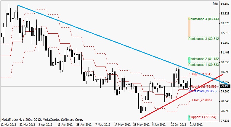 2012/07/03 - けろけろさんの株式ブログ。タイトル:「2012-07-03 週足」 本文:2012-07-03 週足左から、 ユロ・ドル ユロ・円 米ドル・円
