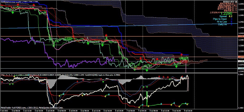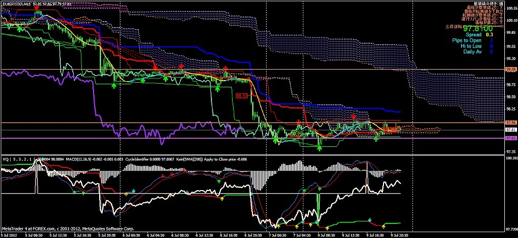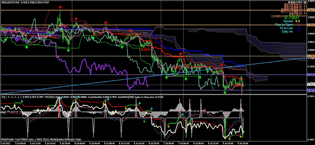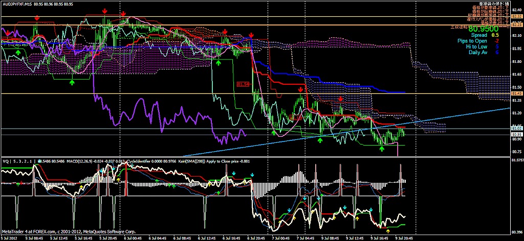 2012/07/10 - けろけろさんの株式ブログ。タイトル:「2012-07-09 15分足」 本文:2012-07-09 15分足左から ユーロ・ドル ユーロ・円 豪ドル・円ユーロに関しては、もみもみ状態。なんの材料を探しているのだろう?