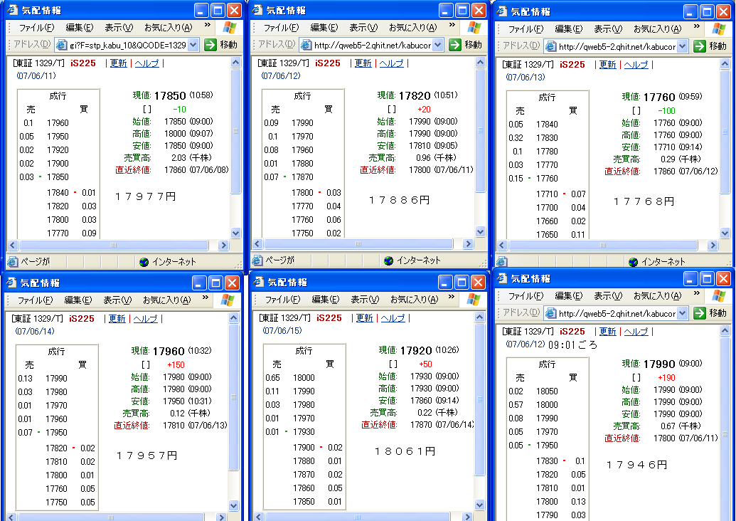 2007/07/01 - miyakenさんの株式ブログ。タイトル:「iシェアーズ日経225(1329)」 本文:iシェアーズ日経225(1329)について調べてみました。 添付のファイルは、前引の板の状況と、先物から逆算したNAVです。 6月4日~6月29日までを調べると