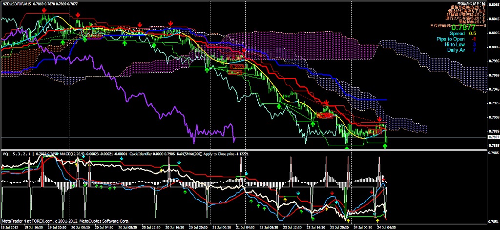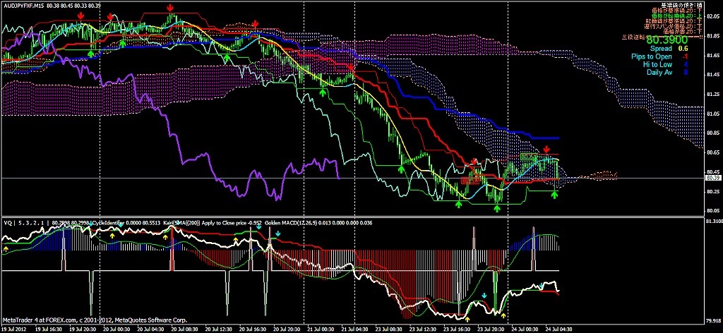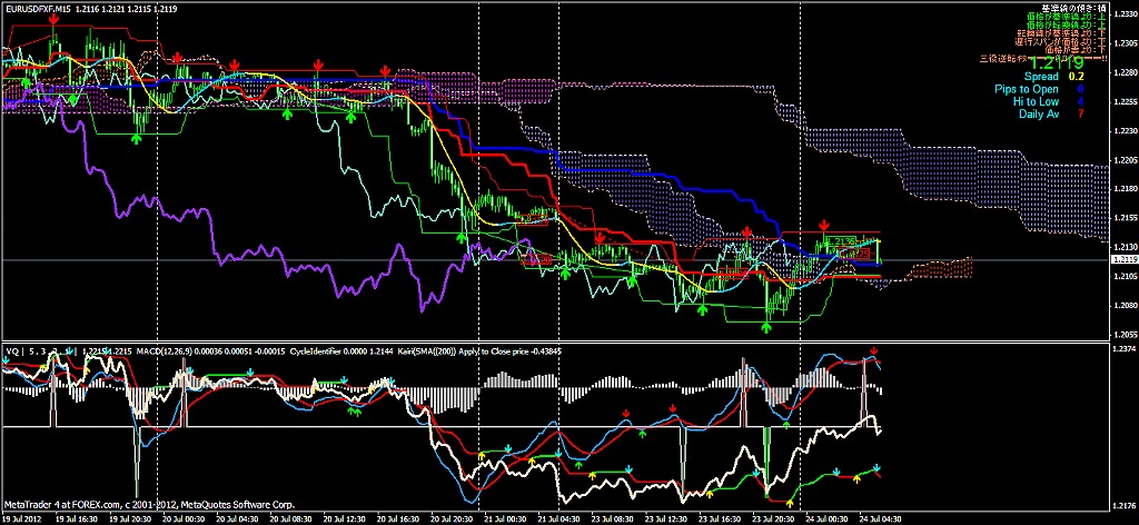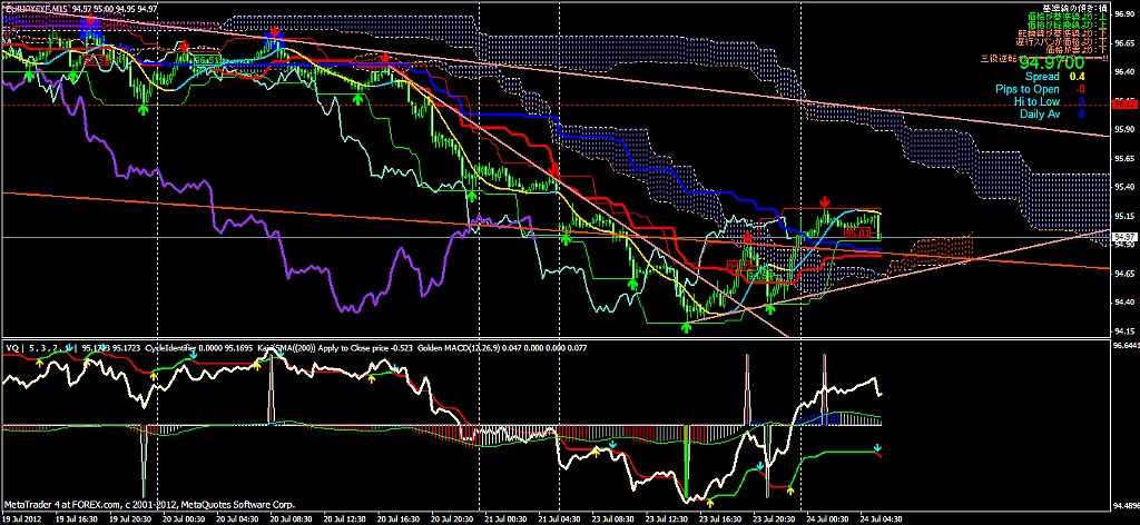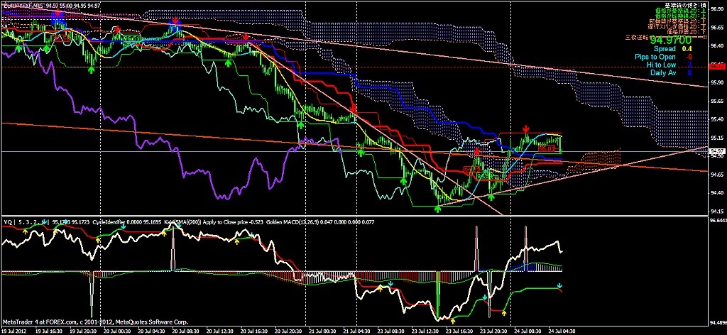 2012/07/24 - けろけろさんの株式ブログ。タイトル:「2012-07-24 15分足」 本文:2012-07-24 15分足左から ユロドル ユロ円 豪ドル円豪ドル円が下げてる~