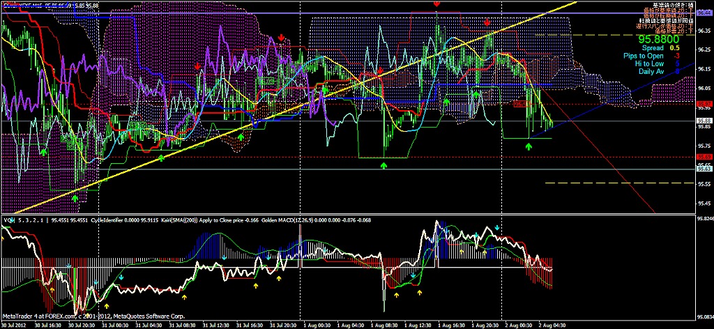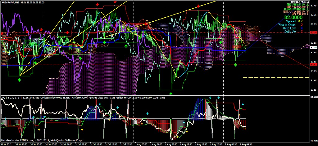 2012/08/02 - けろけろさんの株式ブログ。タイトル:「2012-08-02 15分足」 本文:左から ユーロドル ユーロ円 豪ドル円昨日は、寝坊した上に朝からギャーギャー騒ぐ怪獣が3人・・・対応に追われてこっちまで手が回らなかった。