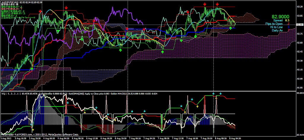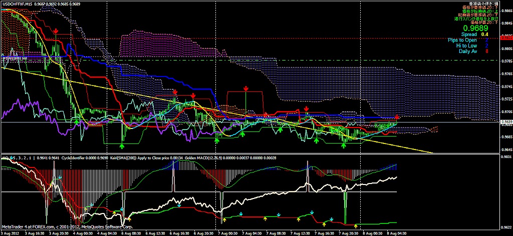 2012/08/08 - けろけろさんの株式ブログ。タイトル:「2012-08-08 15分」 本文:ひだりから ユーロドル ユロ円 豪ドル円