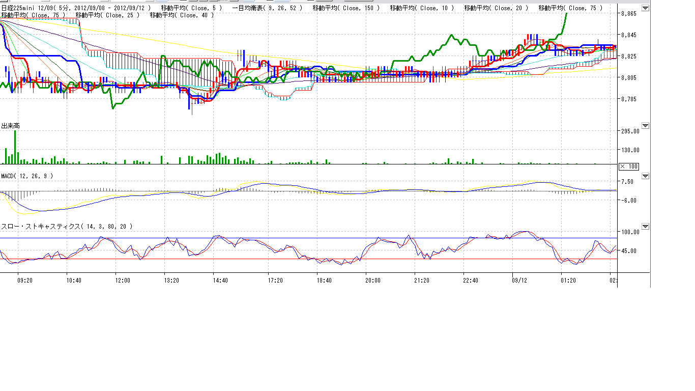 2012/09/11 - 月とスッポンさんの株式ブログ。タイトル:「9/11 本日のチャート」 本文:右のバナーをクリックしてしまい、日記が消えてしまいました。 みんかぶさん、いい加減自動保存機能つけてほしいです。。。 という事で、ニュース記事貼りつけは省略… 相場雑感