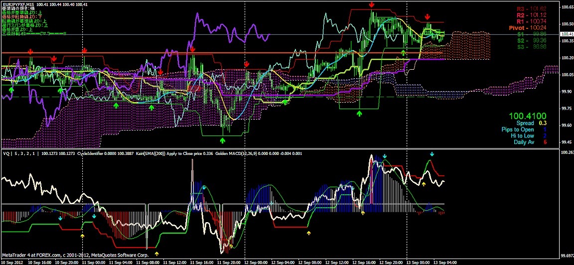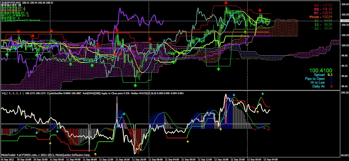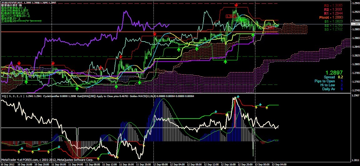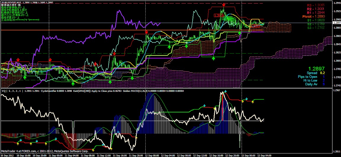2012/09/13 - けろけろさんの株式ブログ。タイトル:「2012-09-13 15分足」 本文:2012-09-13 15分足左から ユーロドル ユーロ円 豪ドル円昨日の夕方の動きにビビった。