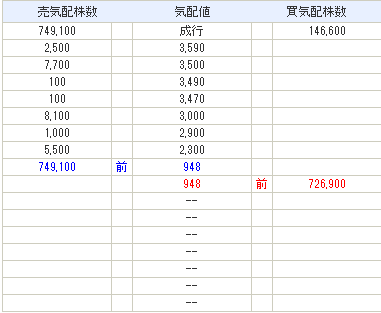 引け前の気配値は、当初ストップ安まで行きましたが、