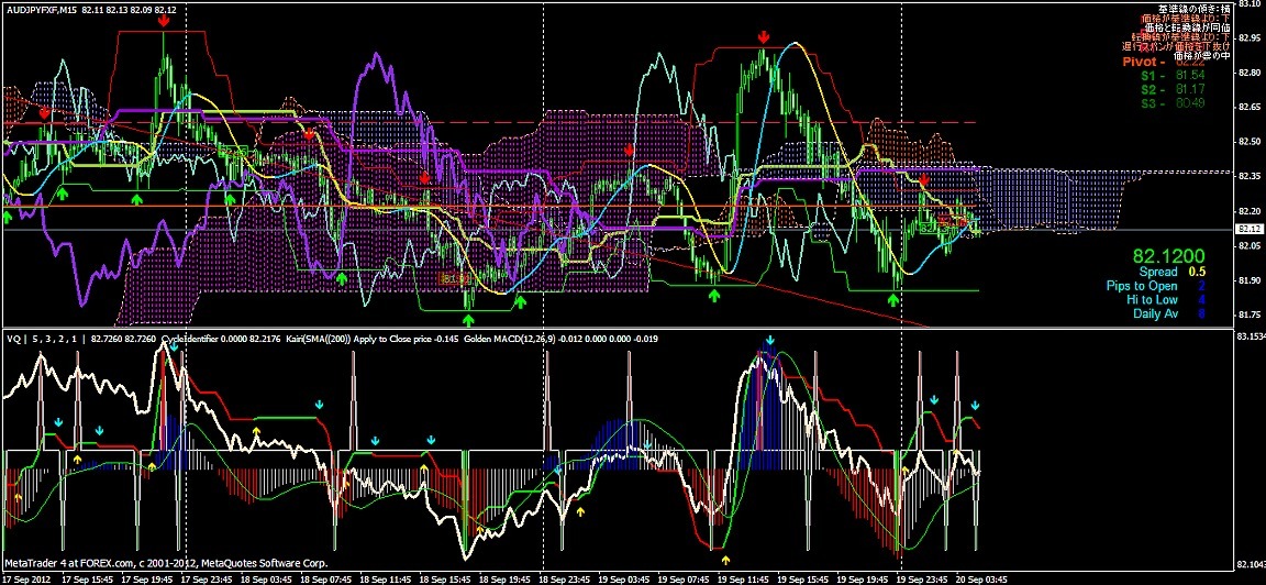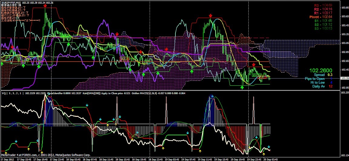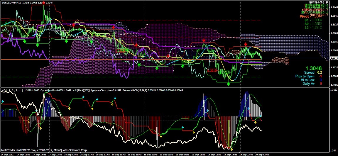 2012/09/20 - けろけろさんの株式ブログ。タイトル:「FX 2012-09-20 15分足」 本文:FX 2012-09-20 15分足左から ユロドル ユロ円 豪ドル円昼近くに、ばくあげ~ でもあまりに勢いが強すぎて 急落~ほぼ行ってこいじゃないか!!!豪ドル円