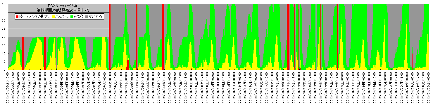 2012/09/22 - miyakenさんの株式ブログ。タイトル:「DQXサーバ状況 ~20120920」 本文:DQXのサーバー混雑状況のグラフです。