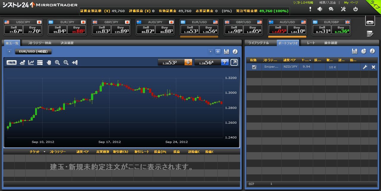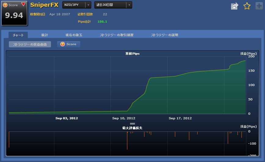 2012/09/27 - 川島 寛貴(Kshima)さんの株式ブログ。タイトル:「ミラートレーダー やってみた |ブログ 」 本文:ミラートレーダーも検証ということで、1位のストラテジー「SniperFX」で実施。とりあえず5万円でスタートです。■名前 SniperFX
