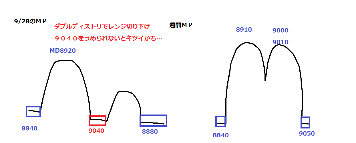 ボリバンも下放れの雰囲気、MPも8940にレッジを残してます。