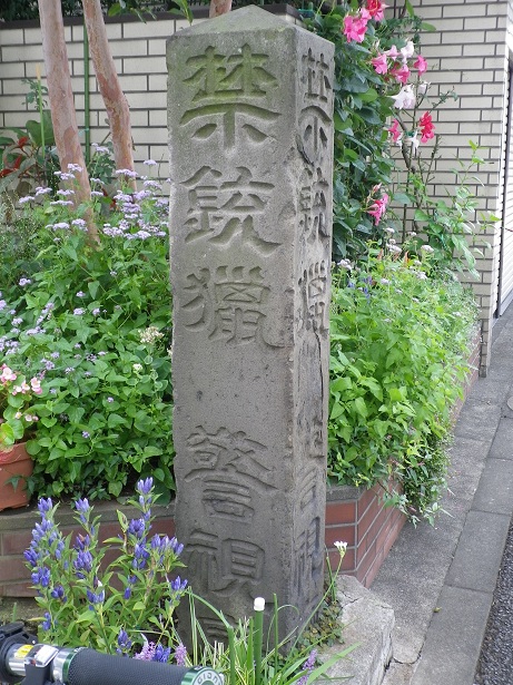 ↑九品仏浄真寺の裏手にあった石碑(?) 「禁銃猟  警視庁」とあります。いつんだよ、これ。