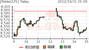 今日はかろうじて上髭付き陽線だが、8500円に迫る寄り付き安値。