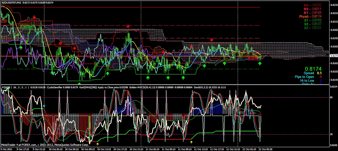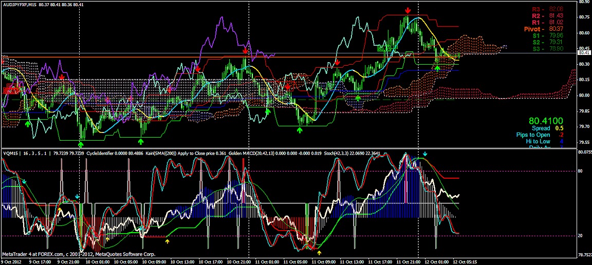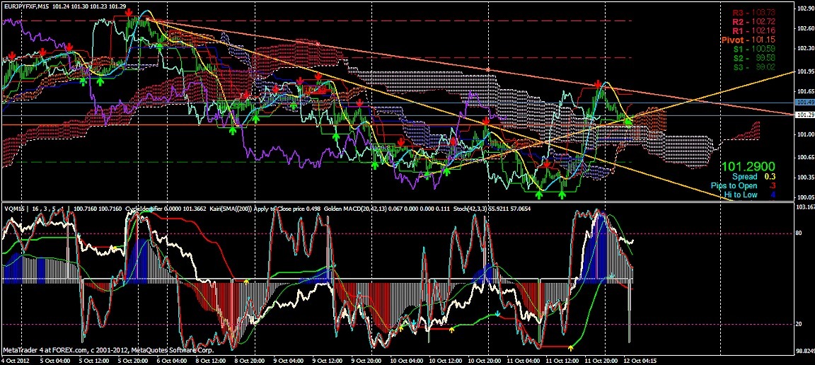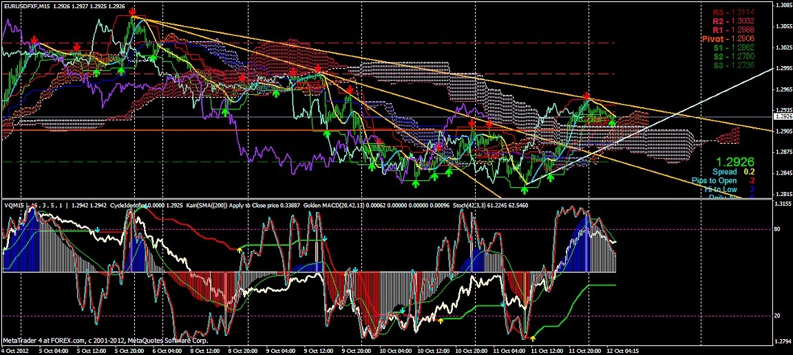 2012/10/12 - けろけろさんの株式ブログ。タイトル:「FX 2012-10-12 15分足」 本文:左からユーロドル ユーロ・円 豪ドル・円(時間足は真ん中に