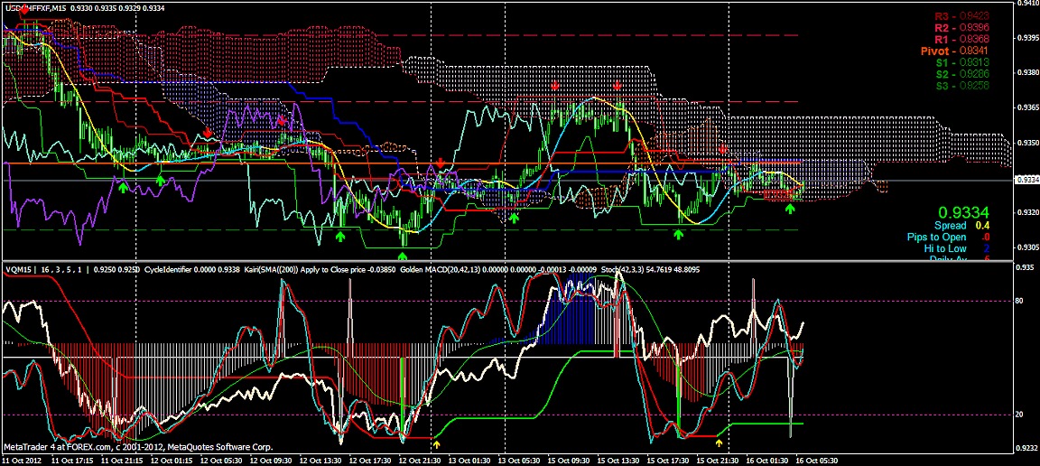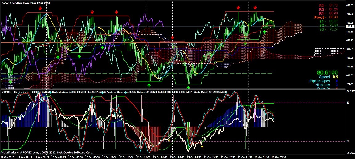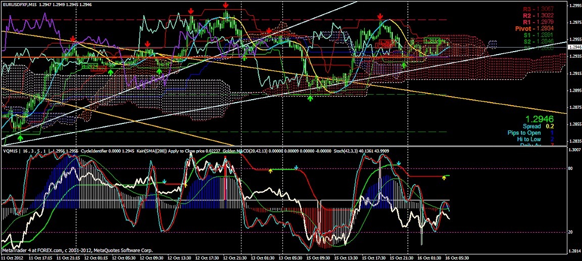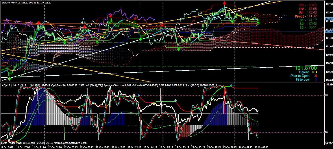 2012/10/16 - けろけろさんの株式ブログ。タイトル:「FX 2012-10-16 15分足」 本文:左からユーロドル ユーロ・円 豪ドル・円(時間足は真ん中に