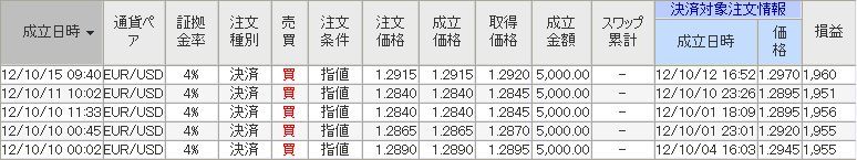 ユーロドル売りのトラリピ設定のため、1.2900~1.300まで25pips毎に売りの注文がバシバシ