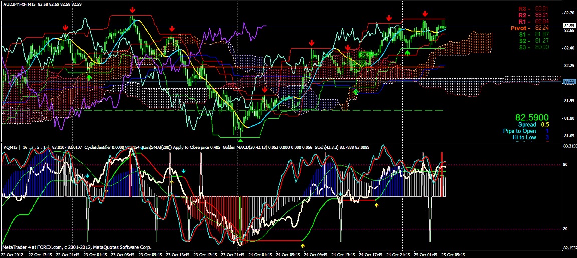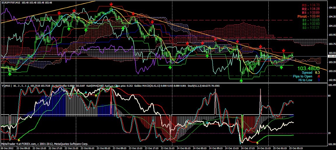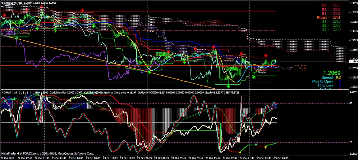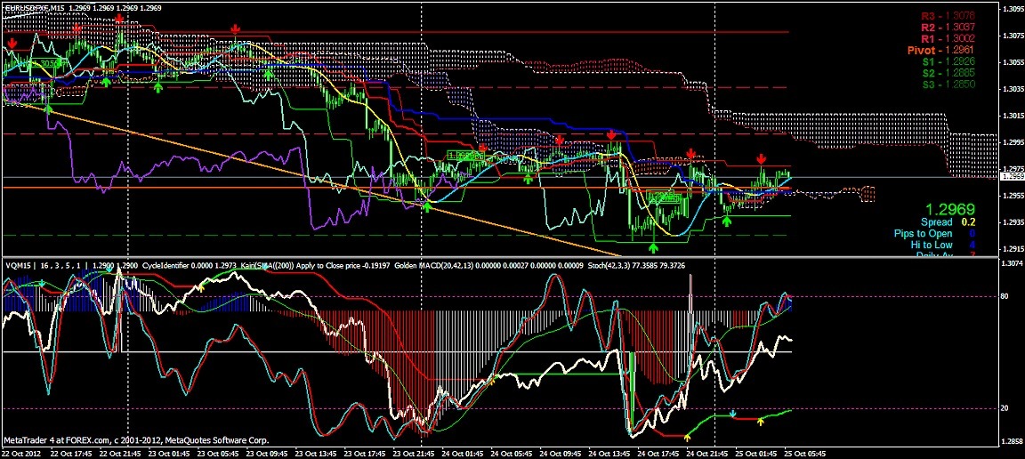 2012/10/25 - けろけろさんの株式ブログ。タイトル:「FX 2012-10-25 15分足」 本文:左からユーロドル ユーロ・円 豪ドル・円(時間足は真ん中に 5分足は真ん中から)っと気に留めてみよう~日銀。日銀っていうから、昨日が政策金利決定するのか? っと思っていたら・・・違うじゃん!ドル円