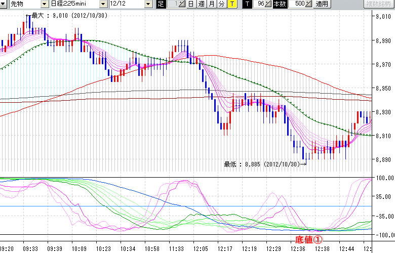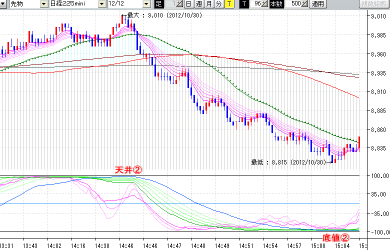 2012/10/30 - tensokoさんの株式ブログ。タイトル:「★日銀追加金融緩和発表-いつもの如く、期待通りの失望売り★」 本文:★10/30 日中の株価の天底★ ↓クリックで画像拡大↓  ↓クリックで画像拡大↓  ↓クリックで画像拡大↓