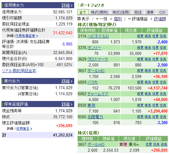 あと、3174, 3629 の2銘柄を新規に買ったこともあり、