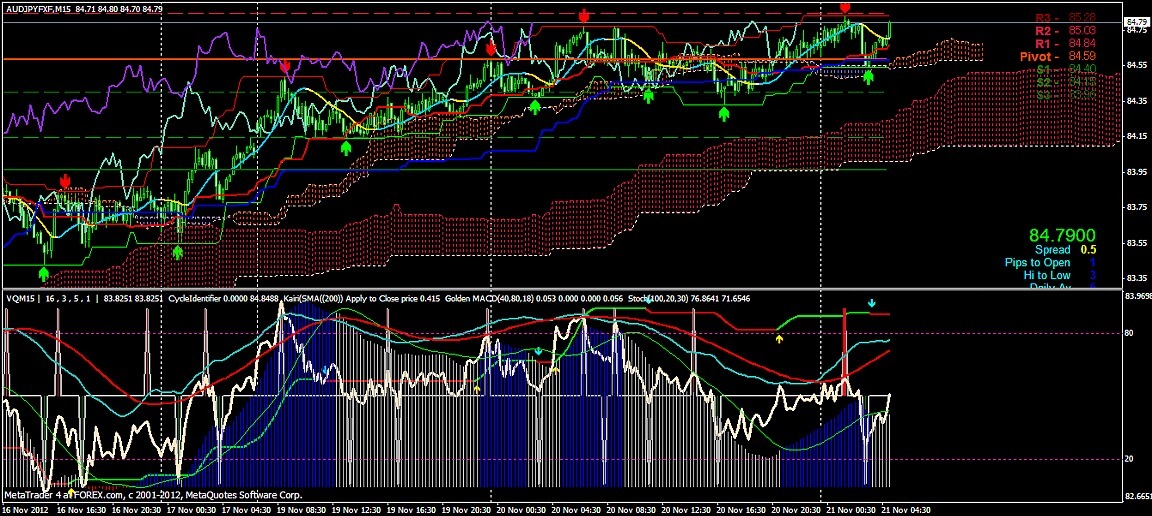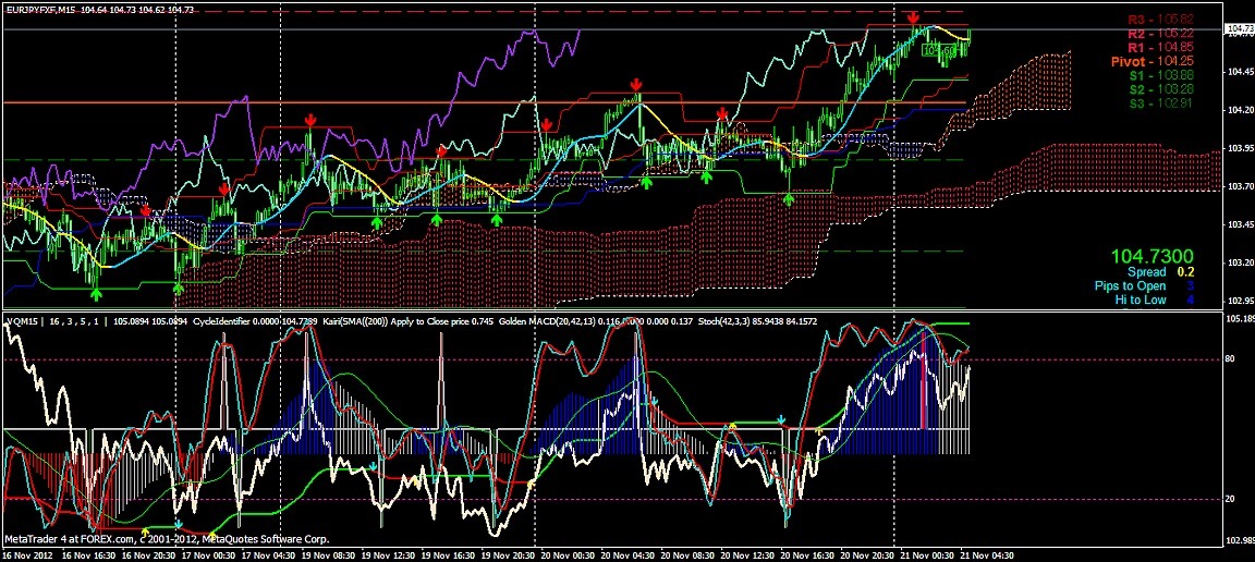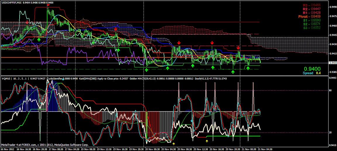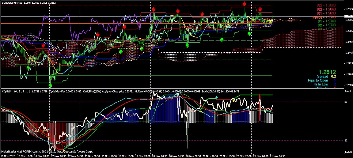 2012/11/21 - けろけろさんの株式ブログ。タイトル:「FX 2012-11-21 15分足」 本文:左からユーロドル ユーロ・円 豪ドル・円(時間足は真ん中に 5分足は真ん中から)っと気に留めてみよう~出張中はできなかったり、帰ってきてもネットが出来なかったり~