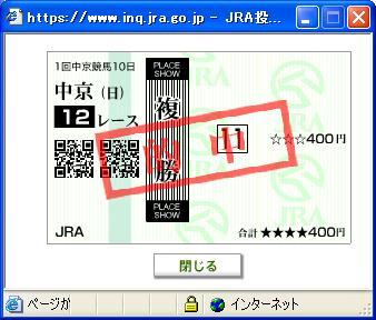 難なく先行抜け出しで快勝。単勝とワイド的中!初回当たるとは幸先良いぞっと♪