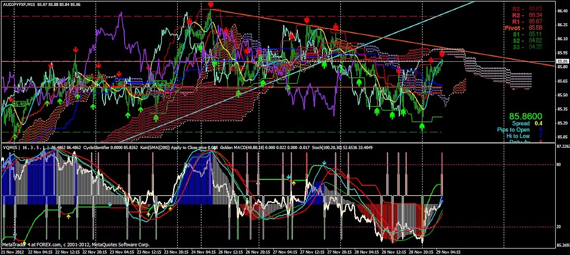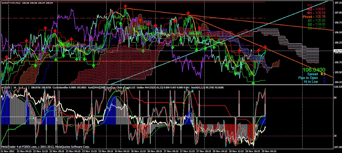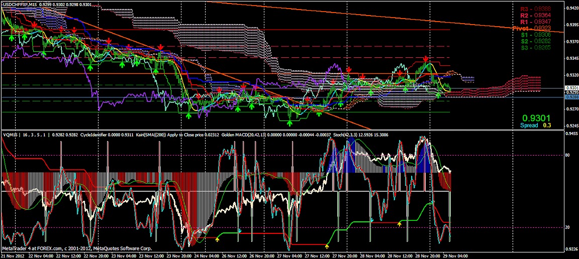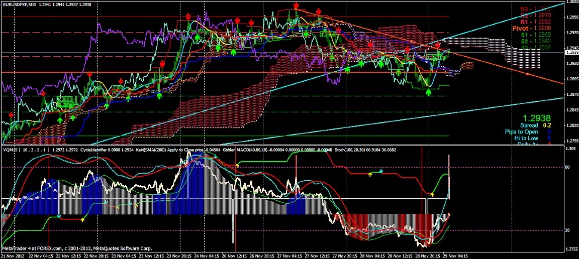 2012/11/29 - けろけろさんの株式ブログ。タイトル:「FX 2012-11-29 15分足」 本文:左からユーロドル ユーロ・円 豪ドル・円(時間足は真ん中に