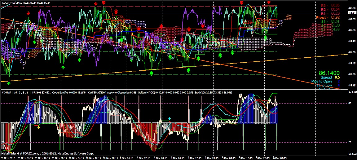 2012/12/06 - けろけろさんの株式ブログ。タイトル:「FX 2012-12-06 15分足」 本文:昨日までの動き左からユーロドル ユーロ・円 豪ドル・円(時間足は真ん中に 5分足は真ん中から)っと気に留めてみよう~