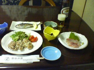 2007/07/04 - 田園調布さんの株式ブログ。タイトル:「伊豆大島民宿」 本文:伊豆大島で宿泊した民宿の食事(夕食)です。 食事は合格です。酒持込大丈夫です。