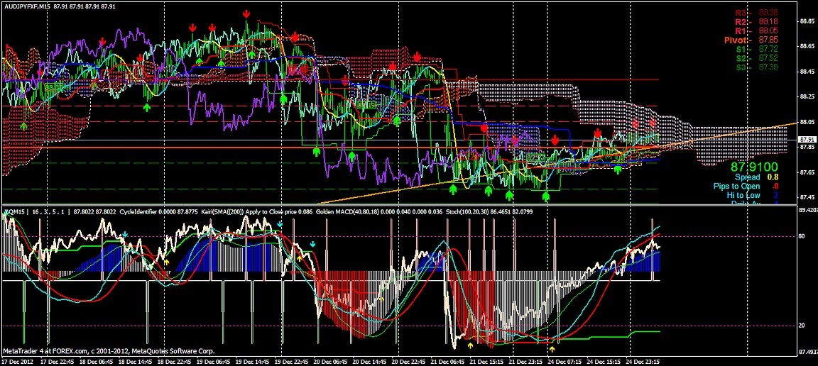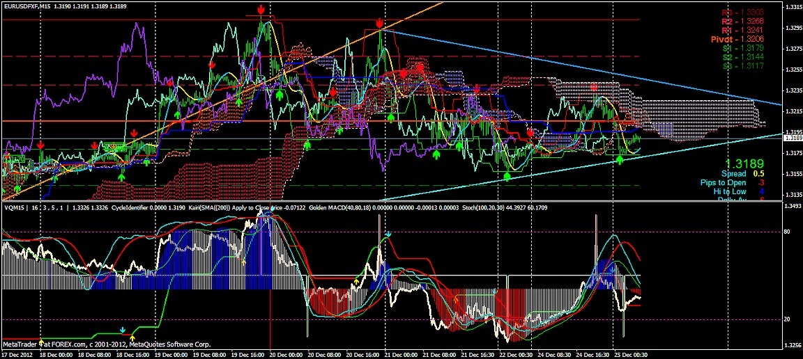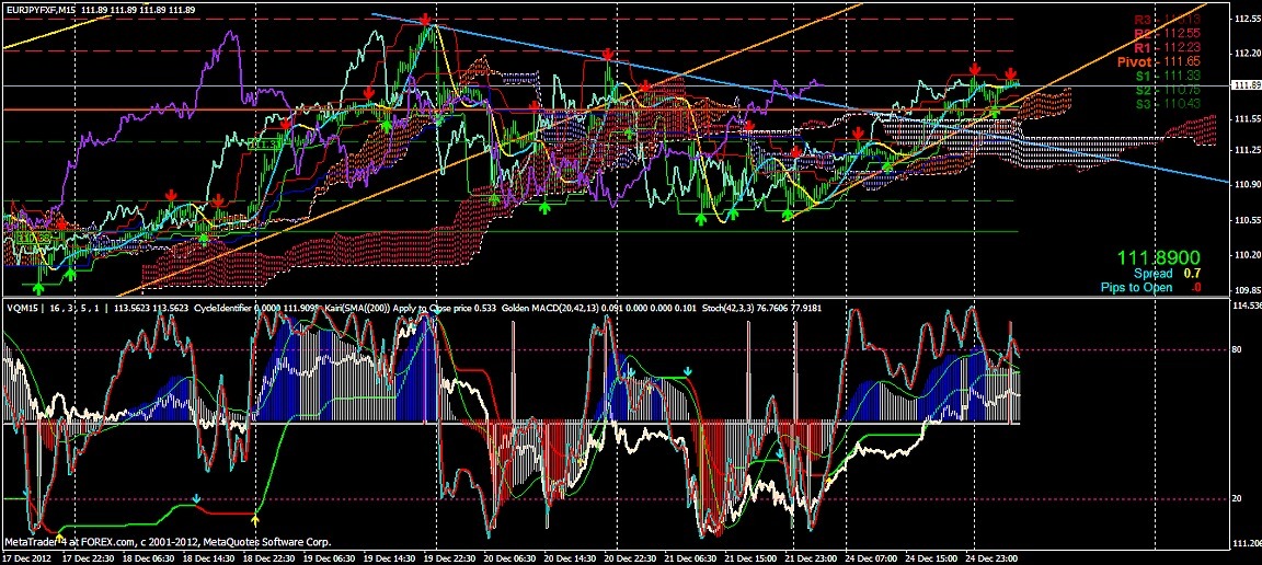 2012/12/25 - けろけろさんの株式ブログ。タイトル:「FX 2012-12-25 15分足」 本文:昨日までの動き左から 昨日は、寝坊してサボっちまった(笑) 相変わらずSポジをもっては切られてます。