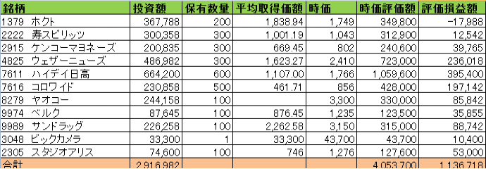 おかげさまで投資銘柄11銘柄中10銘柄でプラスとなっています。