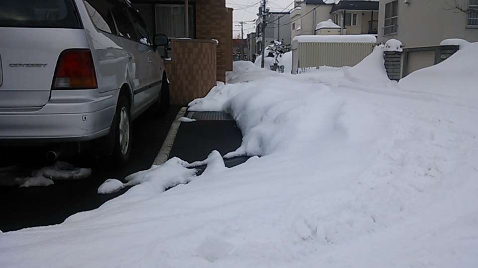 融けた道路もあるのに中小路はまだまだ雪です^^;
