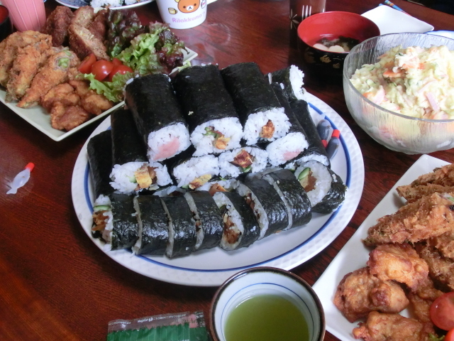 海苔巻ばかりでなく、からあげやらいろいろあって、おいしそうです。