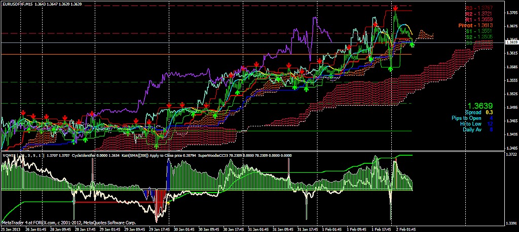 2013/02/04 - けろけろさんの株式ブログ。タイトル:「FX 2013-02-04 15分足」 本文:昨日までの動き左から いやー指値が雇用統計ではなくて雇用統計後の動きで刺さるとは思わなんだ(笑)