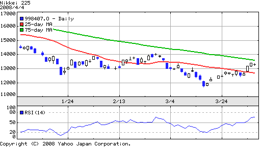 2008/04/06 - みやまな鉄砲長さんの株式ブログ。タイトル:「第155話 鉄砲隊の私的勉強会(4/6)」 本文:今週は巡回レポお休みしちゃうけどね(^^ゞ あれマイペースでやってるから(笑) 今回はチャートがちょっと不自然にあげてるねぇ~ *****むかしばなし風(あらすじ)*** [東京