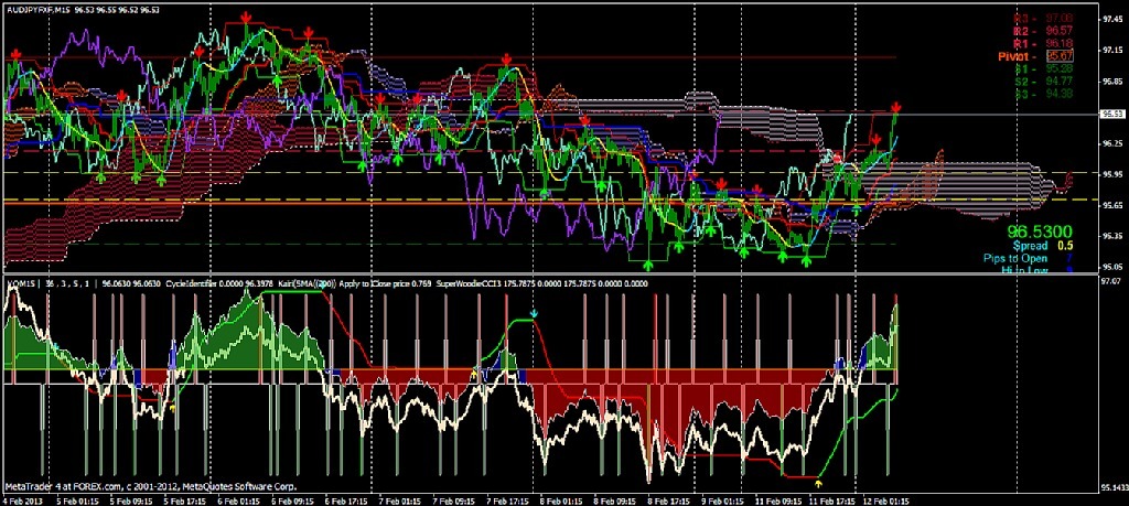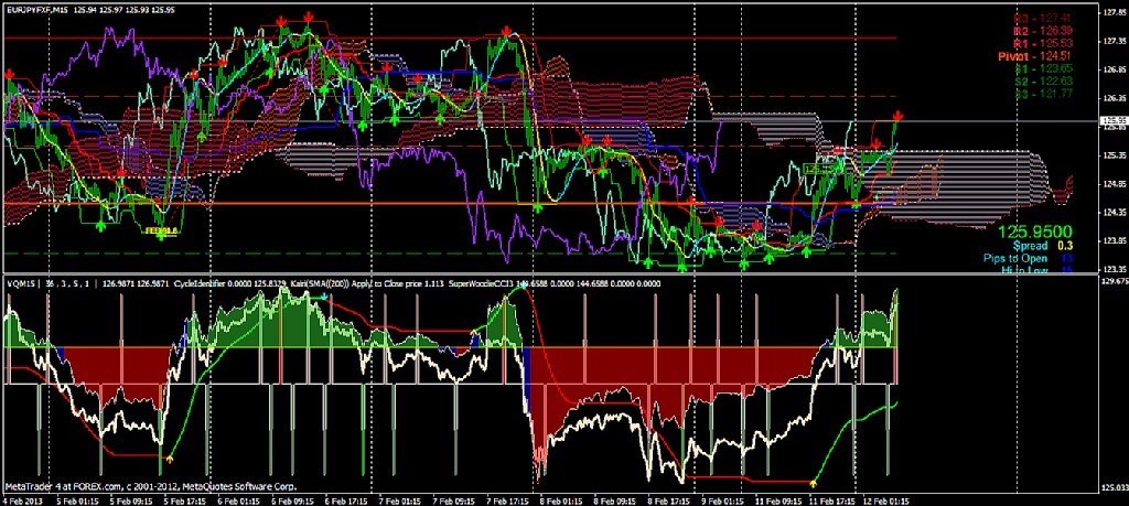 2013/02/12 - けろけろさんの株式ブログ。タイトル:「FX 2013-02-11 15分足」 本文:昨日までの動き左から 木・金の下げに一喜一憂をしたが・・・ 円売りが強い ioiSポジを閉じて泣く泣くLポジを持つことにした。