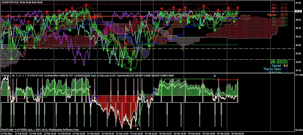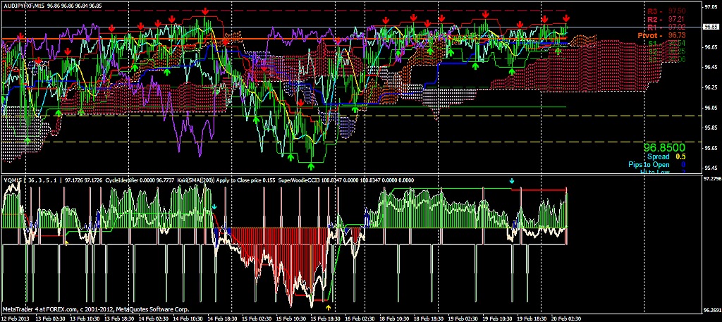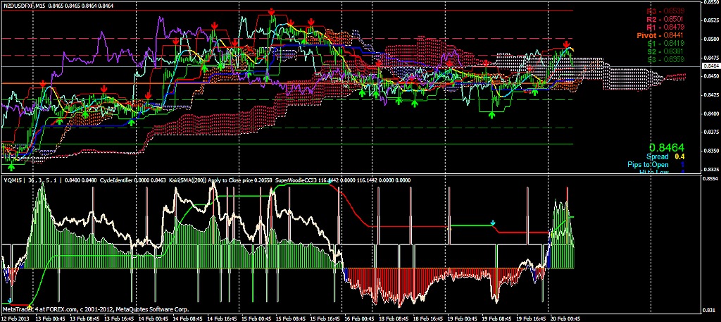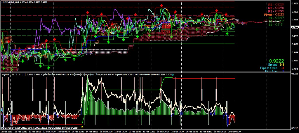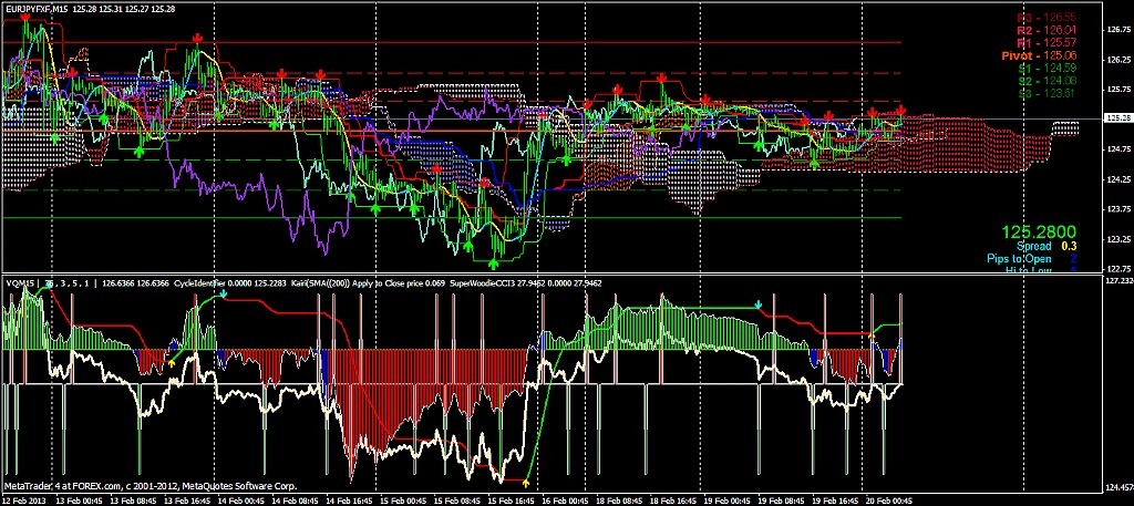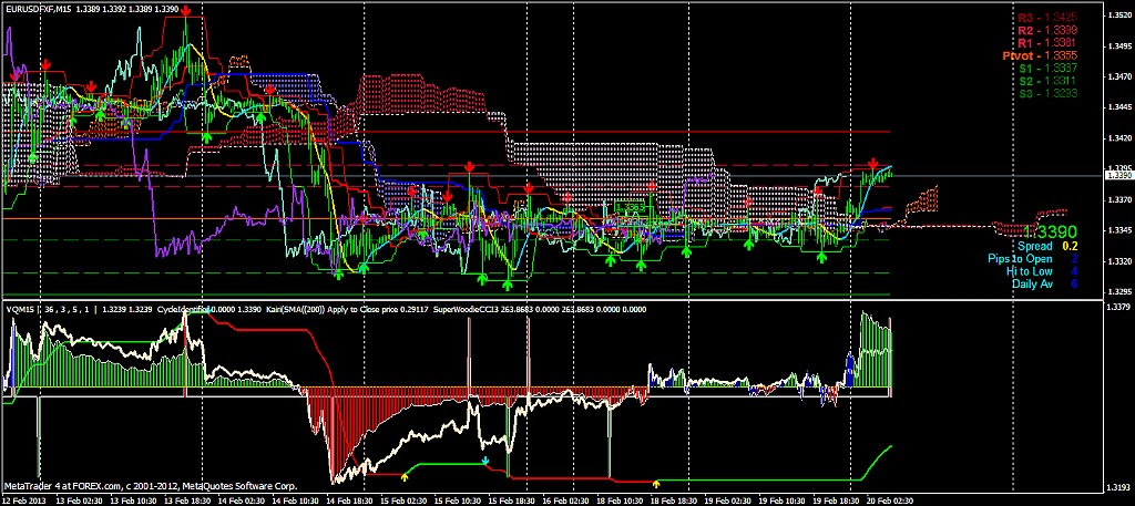 2013/02/20 - けろけろさんの株式ブログ。タイトル:「FX 2013-02-20 15分足」 本文:昨日までの動き左から 今日は上げそうだなぁ~ 最近、下げてる先行スパンの中に入っても直ぐ抜けてきてしまう。