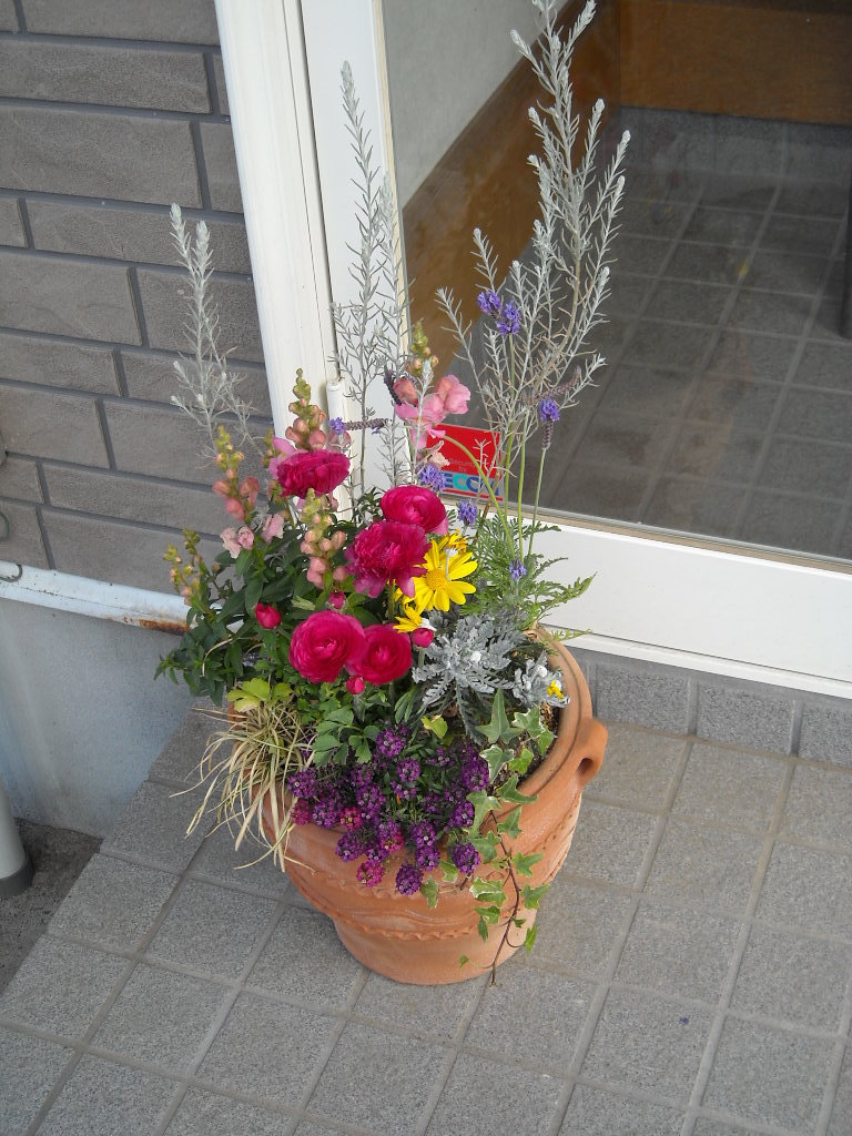 花綺麗ですね~寄え植えですね(^^)結構難しいんですよね!!