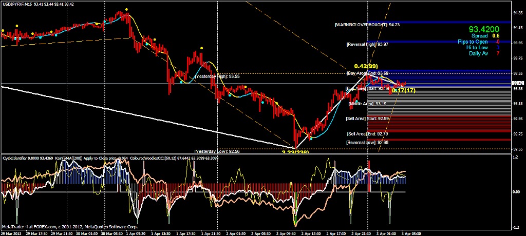 2013/04/03 - けろけろさんの株式ブログ。タイトル:「FX 2013-04-03 15分足」 本文:昨日までの動き左から 昨日の安値が今週の底? あそこを割れるようなら、さらに下に行くけど・・・やべぇ~ 幾枚か持っておけばよかったなぁ~ 今までは口で上がってきたけど、実需で上げるのか?