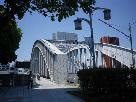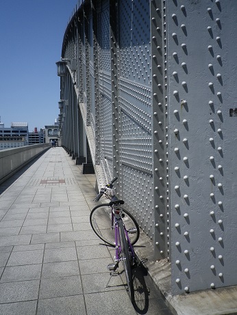 ↓勝鬨橋。こち亀にときどき出てきますね。近くで見ると鋲がいっぱい打ってあって迫力あります。