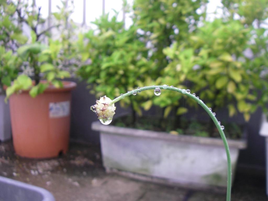 2013/05/21 - ヤッチャン.comさんの株式ブログ。タイトル:「雨の雫の宝石」 本文: 昨日のうちの屋上です霧雨が降ってます 画像をクリックして見てくださいね霧雨がアスパラガスの花に付いて小さな雫になっています ひとつひとつが涙みたい輝いています