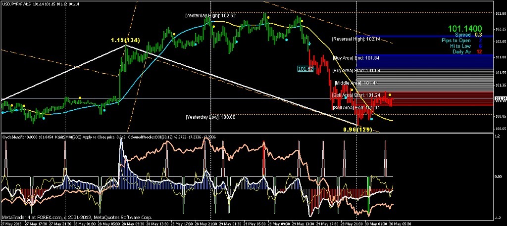 2013/05/30 - けろけろさんの株式ブログ。タイトル:「FX 2013-05-30 15分足」 本文:昨日までの動き左から 東京時間は上げて、NY時間は下げる展開になってきたなぁ~しかも戻りが早い。