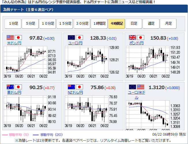 23:00     (米) 5月新築住宅販売件数/ 6月リッチモンド連銀製造業指数/ 6月消費者信頼感指数