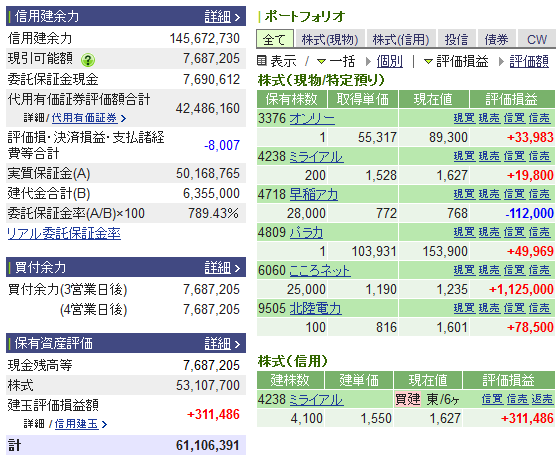 2013/07/07 - slotさんの株式ブログ。タイトル:「7/7 今週の日本株まとめ」 本文:7/7先週 5864万現在 6111万 (+247万円)そこそこ増えた。6060