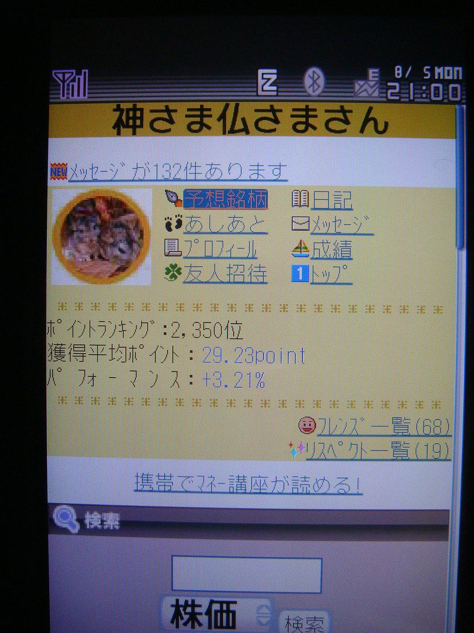 あら、いや~んな回答でつ。神ちゃま何とかして。株神さんの事、リスペクト出来ないでつ。