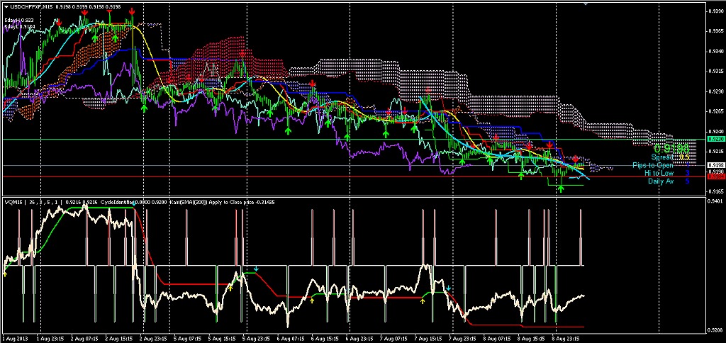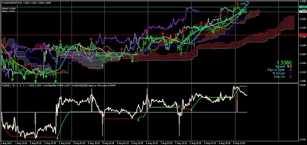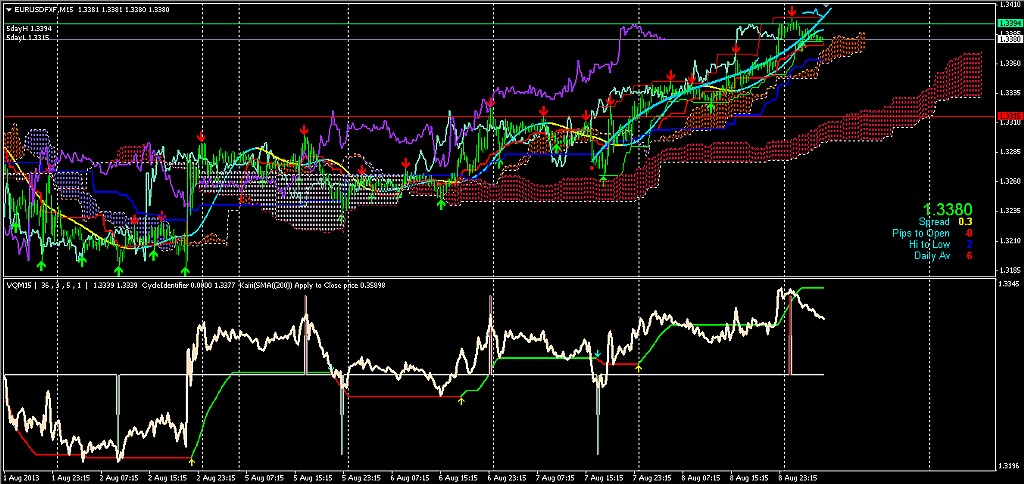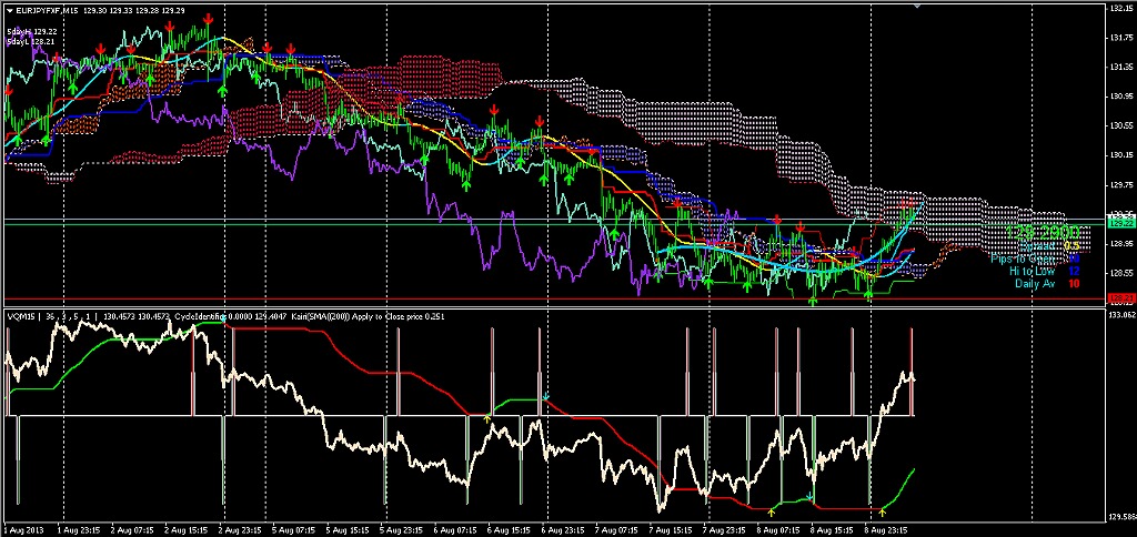 2013/08/09 - けろけろさんの株式ブログ。タイトル:「FX 2013-08-09 15分足」 本文:昨日までの動き左から--ユーロドル-- --ユーロ・円--