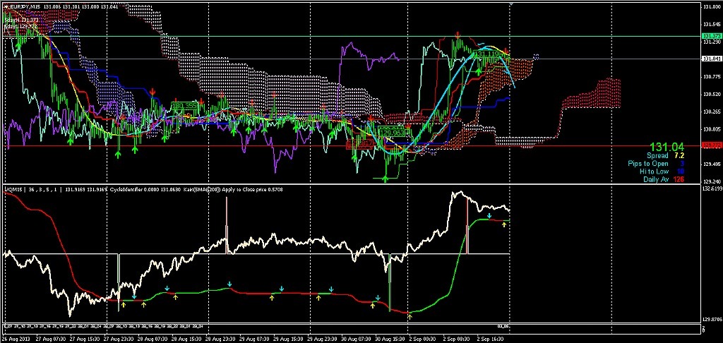 2013/09/03 - けろけろさんの株式ブログ。タイトル:「FX 2013-09-03 15分足」 本文:昨日までの動き左から (チャートの時間は7時間程度遅れてます)--ユーロドル-- --ユーロ・円--
