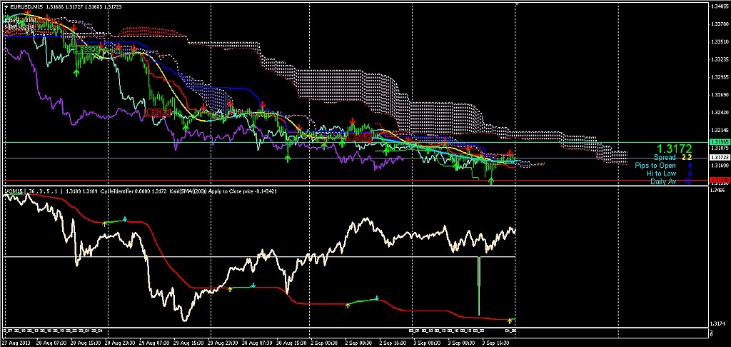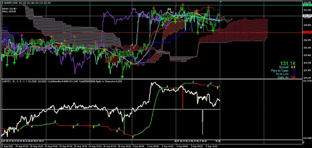 2013/09/04 - けろけろさんの株式ブログ。タイトル:「FX 2013-09-04 15分足」 本文:昨日までの動き左から (チャートの時間は7時間程度遅れてます)--ユーロドル-- --ユーロ・円--
